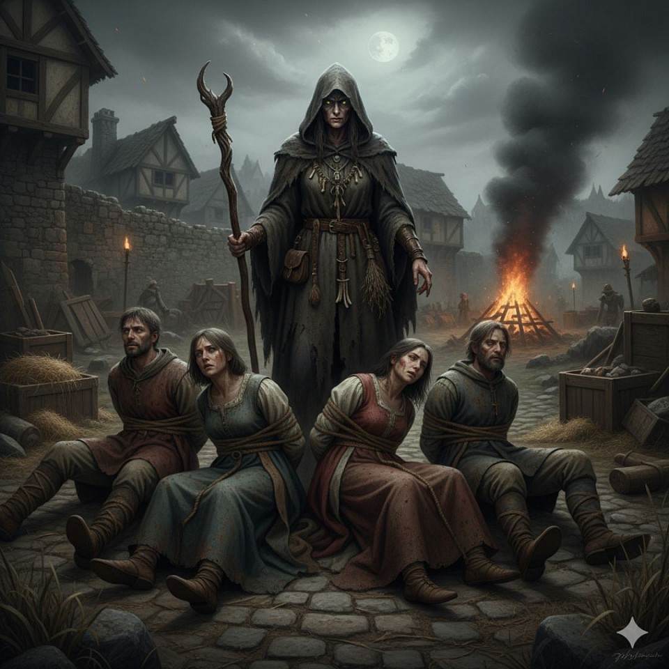 The soldiers who were searching the entire place caught hold of the others who were hiding in the bushes and brought them to the witch.